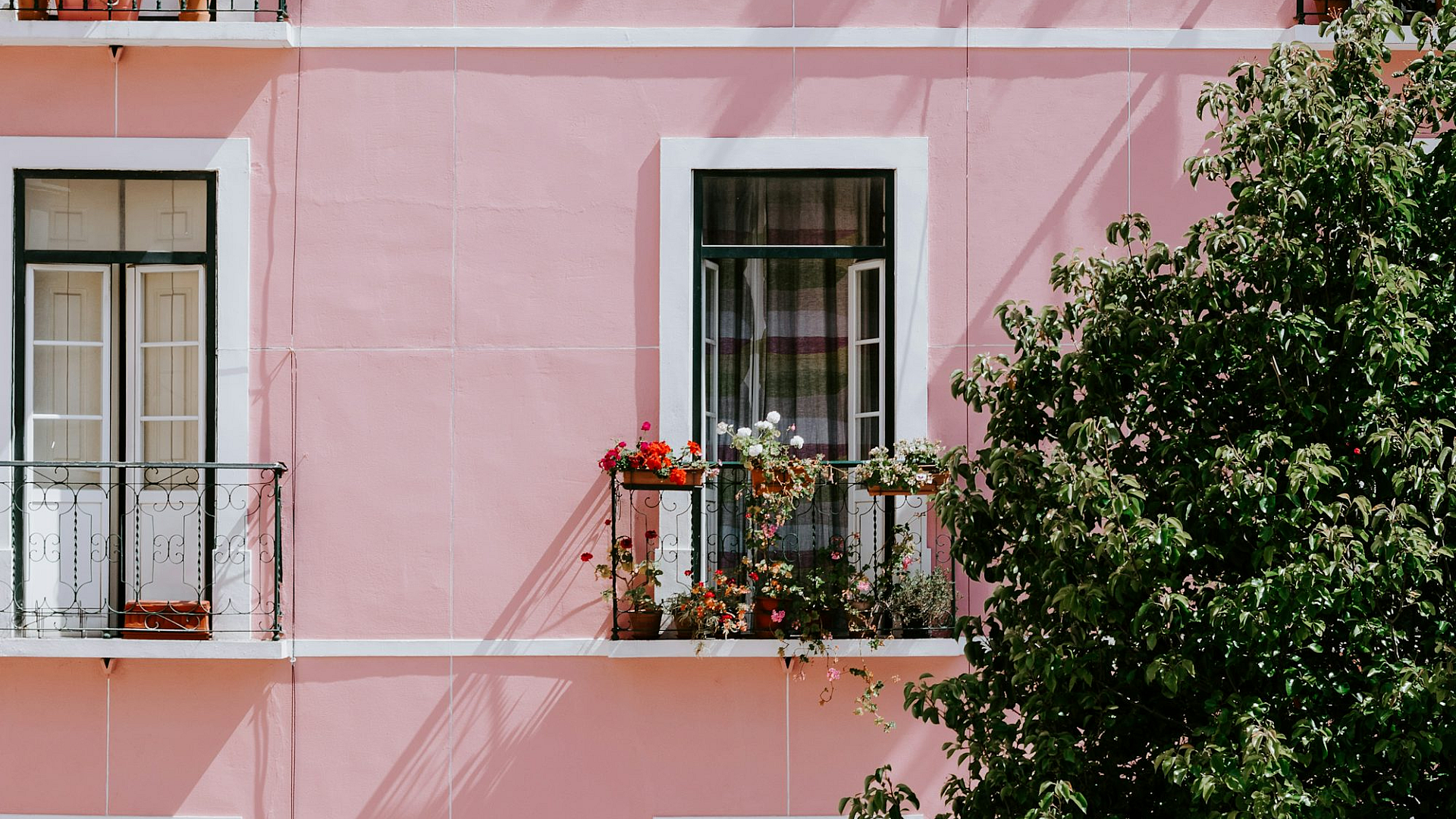 Wallpaper Pink Concrete Commercial Building Near Green Tree