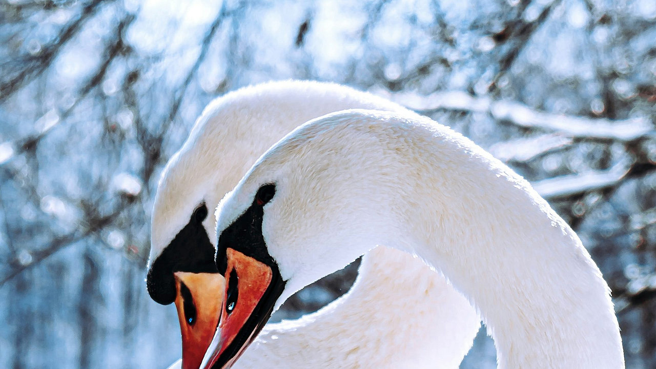 Keyword: angsa putih, salju, musim dingin, latar belakang, wallpaper, alam, burung, hewan, pemandangan, hd